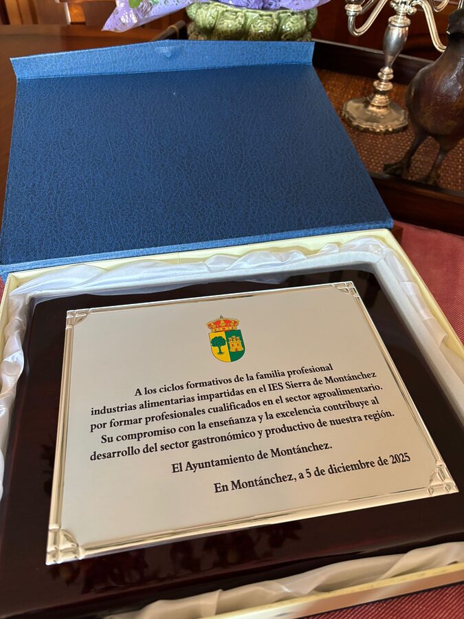 Desde el IES Sierra de Montánchez agradecemos este reconocimiento del pueblo de Montánchez, que refuerza nuestro compromiso con la formación de calidad y el desarrollo del sector agroalimentario en nuestra comarca.